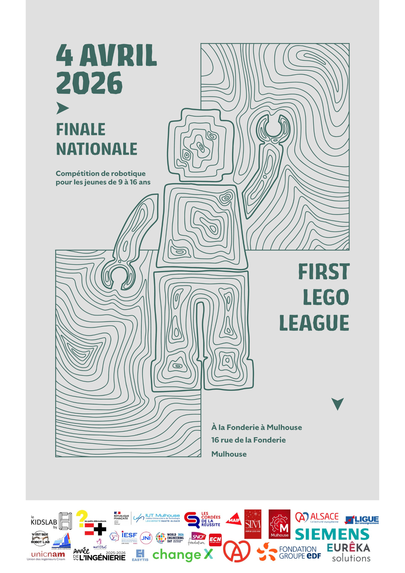 Le 4 avril 2026 à la Fonderie de Mulhouse, les meilleures équipes venues de toute la France se retrouveront pour la grande finale nationale de la First Lego League. Après des mois de préparation et de compétitions régionales, cette journée mettra en lumière la créativité, l’ingéniosité et l’esprit d’équipe de jeunes passionnés de sciences et de robotique.